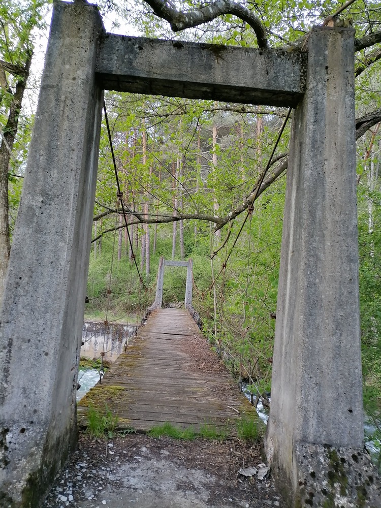 La palanca permet travessar el riu Bast. i continuar riu avall el camí q comença 100 m + amunt, al final de la pista que baixa del passeig d’entrada a Bagà -o bé de la font de l’Andino pel caminet del rec- i va seguint riu avall fins quasi Terradelles Vell.